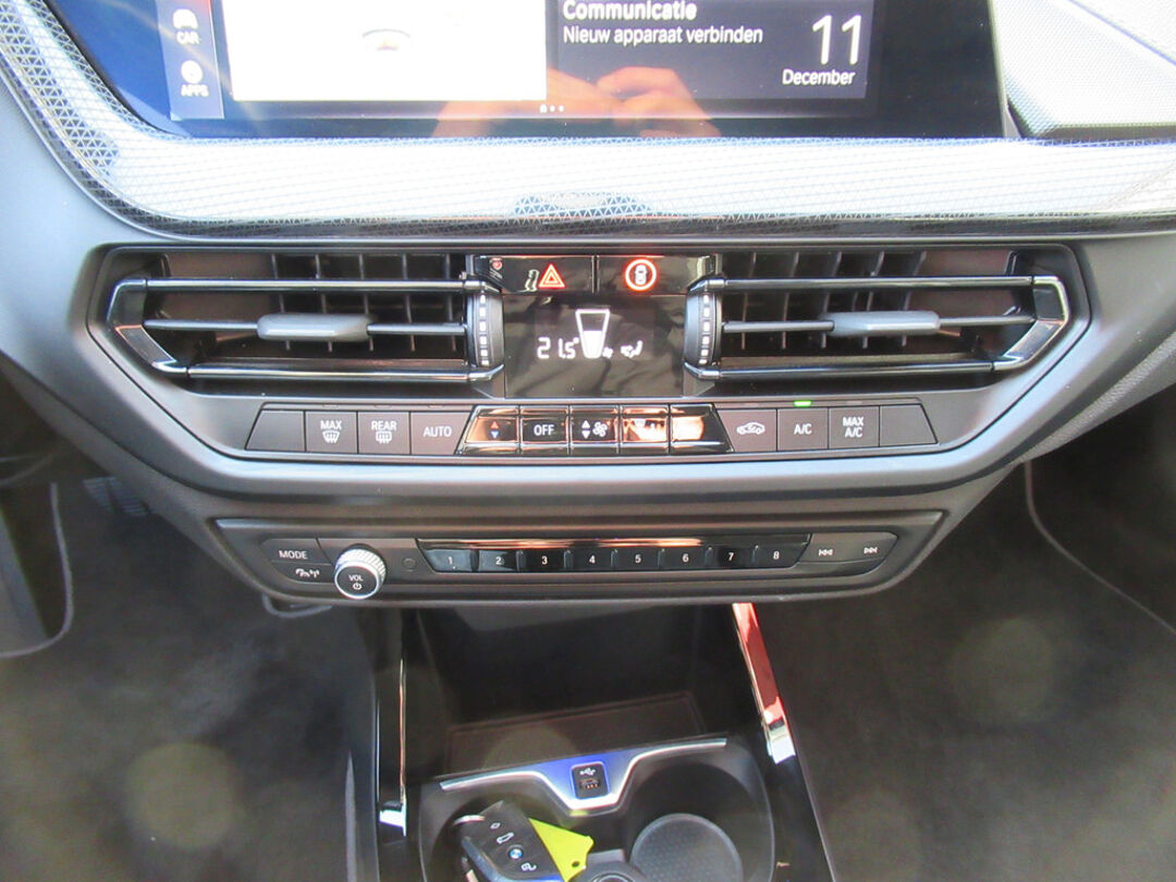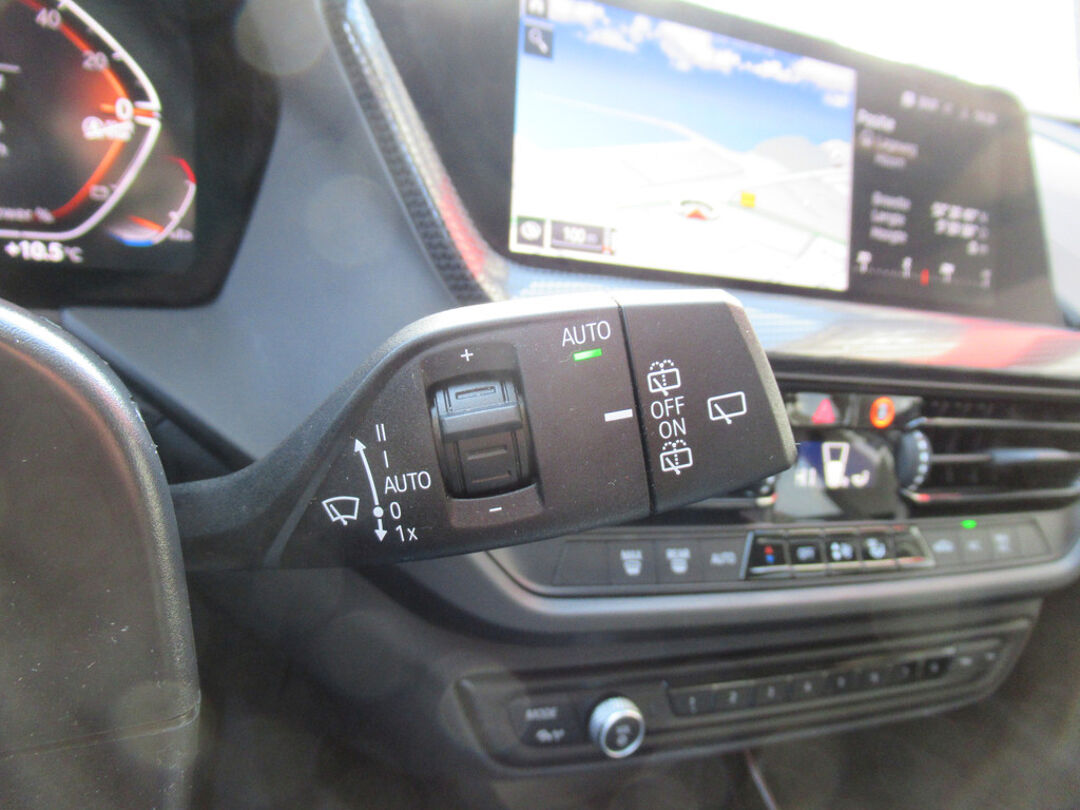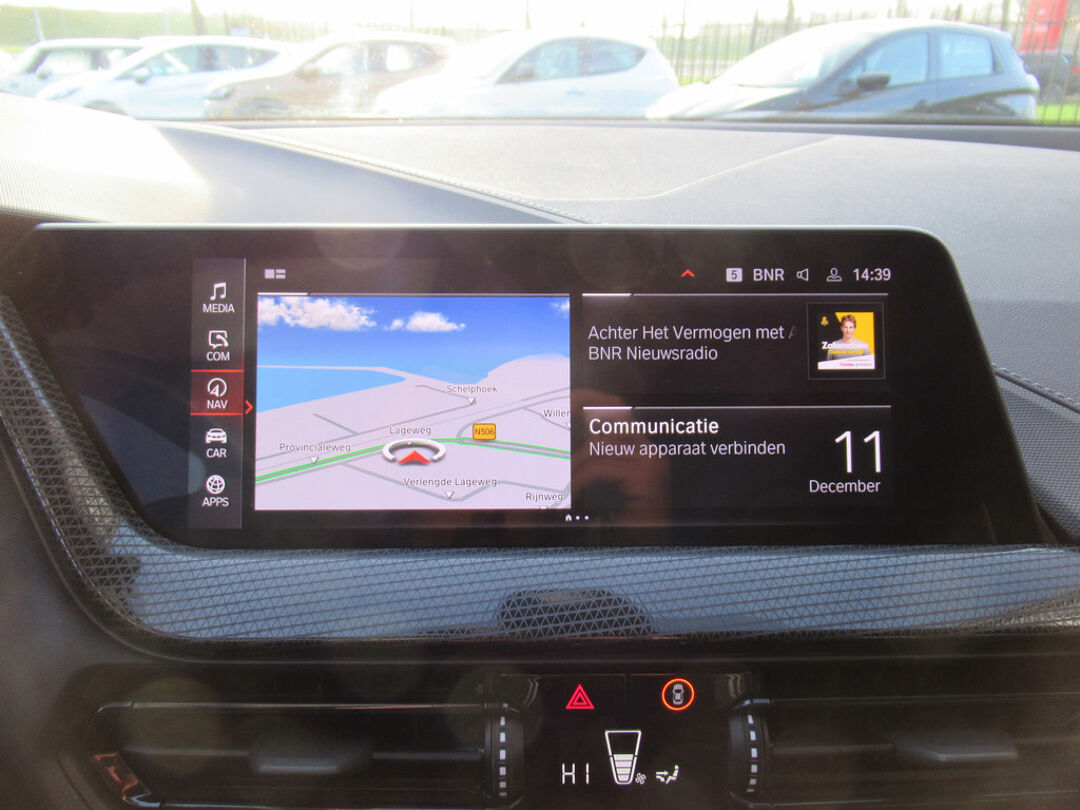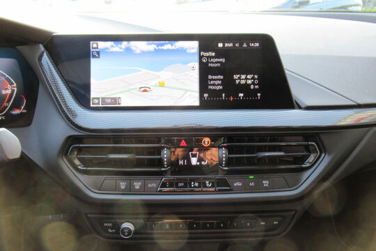 Het slim uitgedachte digitale dashboard toont alle essentiële ritinformatie in één oogopslag. Kommaar-kommaar-kommaar, aldus de parkeerhulp met achteruitrijcamera. Iedere centimeter vrije ruimte komt haarscherp in beeld. Schadevrij inparkeren maar! U kunt tijdens de rit uw ogen steeds op de weg houden, want het audiosysteem (met DAB!) en het navigatiesysteem met harde schijf kunt u bedienen vanaf het stuur of met spraak. Automatische airconditioning regelt volautomatisch de temperatuur. U kiest de gewenste temperatuur en het systeem doet de rest. Achter het stuur van deze BMW bent u niet alleen. De auto kijkt als het ware met u mee tijdens de rit. De regensensor schakelt de ruitenwissers in als het nodig is en de automatisch inschakelbare verlichting doet de lichten voor u aan. Deze auto is voorzien van buitentemperatuurmeter, lederen stuur, isofix-aansluiting, centrale deurvergrendeling met afstandsbediening en boordcomputer.