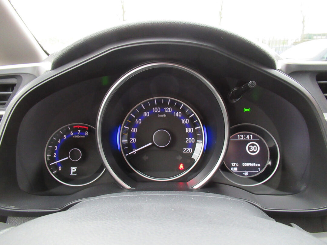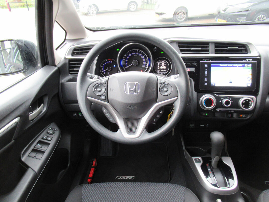 Met de achteruitrijcamera ziet u precies wat er achter de auto gebeurt. Het navigatiesysteem geeft duidelijke instructies terwijl u muziek streamt vanaf uw telefoon of luistert naar het glashelder geluid van de digitale radio. Ook over uw schouder ziet u onderweg niet alles wat er aan de achterzijde gebeurt. Daarom heeft deze Honda Jazz een achteropkomend verkeer waarschuwing. Het drukke verkeer eist onderweg al uw aandacht op. Daarom is het goed dat deze Honda is voorzien van diverse systemen die u assisteren tijdens de rit. Een automatisch inschakelbare verlichting neemt het waar als het donker wordt of gaat schemeren, en schakelt dan automatisch de verlichting in. Op dezelfde manier "ziet" de regensensor de eerste spatjes regen en schakelt dan de ruitenwissers in, en als het harder gaat regenen zet hij de ruitenwissers ook in een snellere stand. De cruise control zorgt voor zorgeloos, ontspannen en zuinig rijgedrag. Wat u ook in deze auto kunt vinden zijn schakelpaddles aan het stuur, airconditioning, buitentemperatuurmeter, isofix-aansluiting, centrale deurvergrendeling met afstandsbediening en toerenteller.