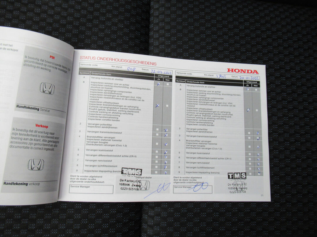 Pragmatisch en veilig als deze auto is, beschikt hij over diverse veiligheidssystemen. Verkeersborddetectie herkent tijdelijke en permanente verkeersborden langs en boven de weg. Het Lane-keeping systeem zorgt voor een automatisch constante positie binnen de rijstrook. Afdwalen is uitgesloten. Forward collision warning waarschuwt voor een kop-staart botsing. Bovenop deze veiligheidsfeatures heeft deze Honda bovendien hill hold functie, brake assist en bandenspanningcontrolesysteem.